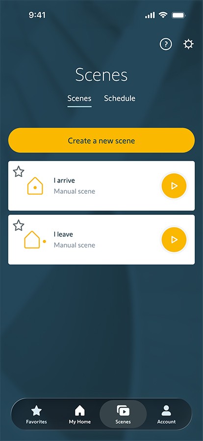 TaHoma®-sovelluksella voit helposti keskittää kodin laitteiden ohjauksen ja luoda omia skenaarioita. Voit aktivoida useita laitteita samanaikaisesti yhdellä painalluksella. Esimerkiksi joka aamu voit käynnistää "Poistun kotoa" -skenaarion, joka sulkee screen-kaihtimet, sammuttaa valot, avaa portin ja aktivoi turvatuotteet.